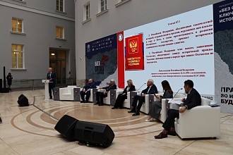 Открыл программу пленарного заседания Форума «Неприятие нацизма: историческая память, правовая оценка, международный аспект» научный доклад Директора Института государства и права Российской академии наук, члена-корреспондента РАН, доктора юридических наук, профессора А.Н. Савенкова «Правовые гарантии сохранения исторической памяти и недопущения проявлений нацизма», подготовленный в рамках научного проекта «Создание российской историографической модели политико-правовых знаний и ее применение для разработки перспективных средств противодействия идеологическим искажениям цивилизационного развития России» по приоритетным направлениям научно-технологического развития.